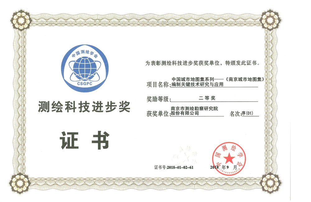 天下非凡国际科技前进二等奖——中国都会地图集系列-《南京都会地图集》体例要害手艺研究与应用