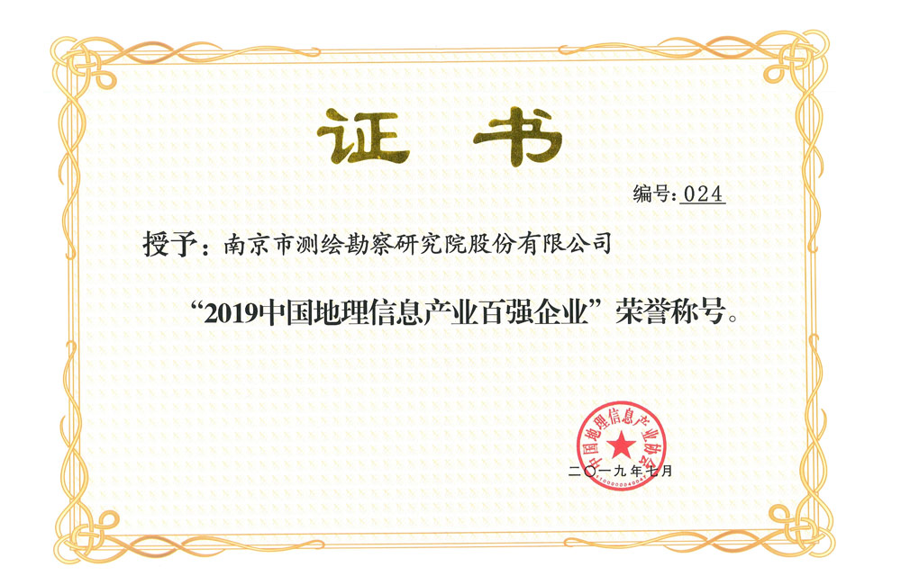 2019年中国地理信息工业协会百强企业